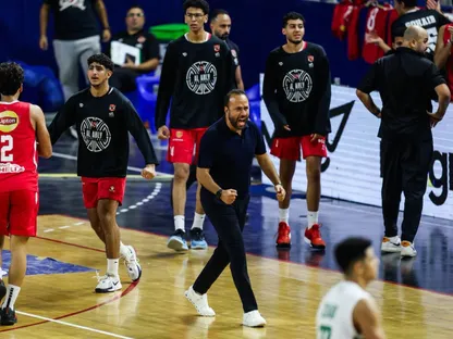 مودي الجارحي مسؤول سلة الأهلي يحتفل بفوز فريق المرتبط أمام الاتحاد السكندري - 24 نوفمبر 2025 - FB/OfficialAhlyBasketball
