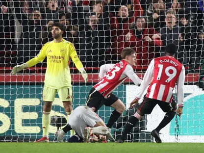 دافيد رايا حارس مرمى أرسنال لحظة تلقيه هدف التعادل من برينتفورد في الدوري الإنجليزي الممتاز - 12 فبراير 2026 - Reuters