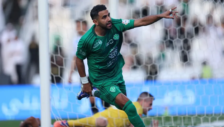وكلّل محرز تألقه بإضافة الهدف الثالث بعد 5 دقائق من متابعة لتمريرة زكريا هوساوي العرضية.