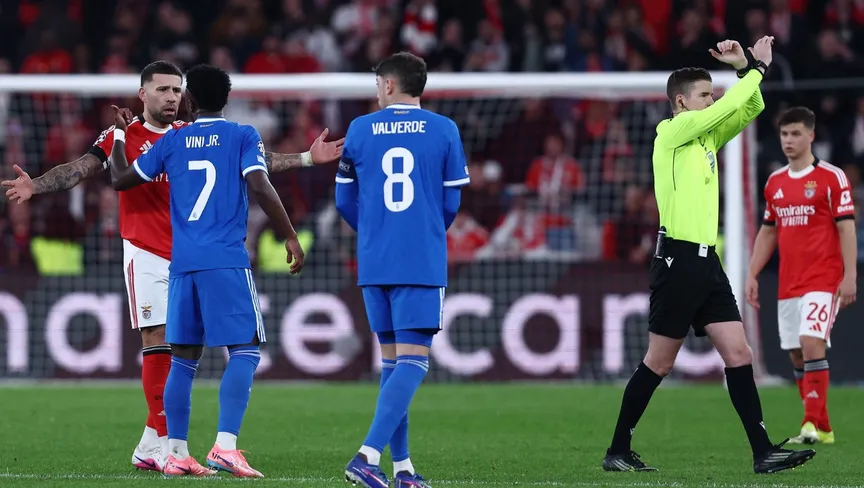 لحظة تفعيل الحكم الفرنسي ليتيكسير لبروتوكول العنصرية خلال مواجهة بنفيكا وريال مدريد في دوري أبطال أوروبا - 17 فبراير 2026 - Reuters