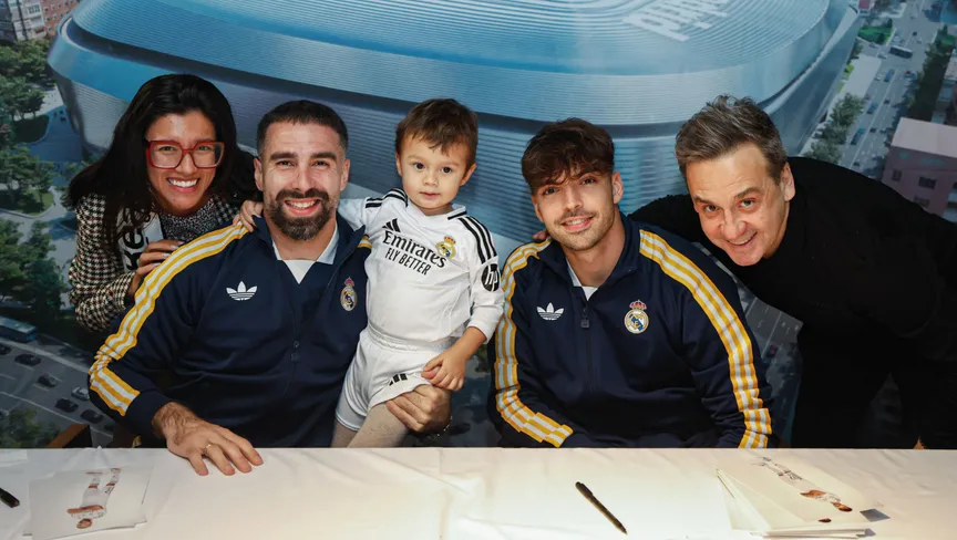 داني كارفاخال وراؤول أسينسيو مع مشجعين لريال مدريد قبل مواجهة أوساسونا - 20 فبراير 2026 - X/@realmadrid