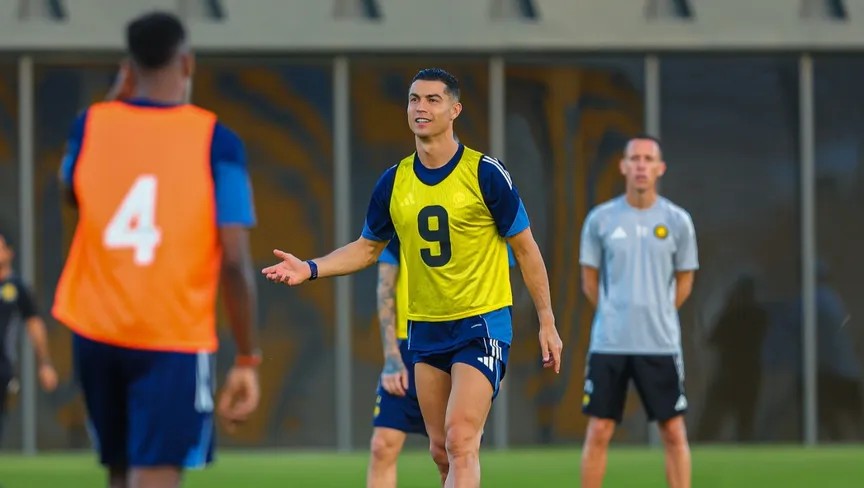 كريستيانو رونالدو خلال تدريبات النصر تحضيراً لمباراة الحزم بالدوري السعودي - 20 فبراير 2026 - X/AlNassrFC