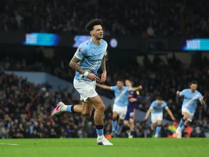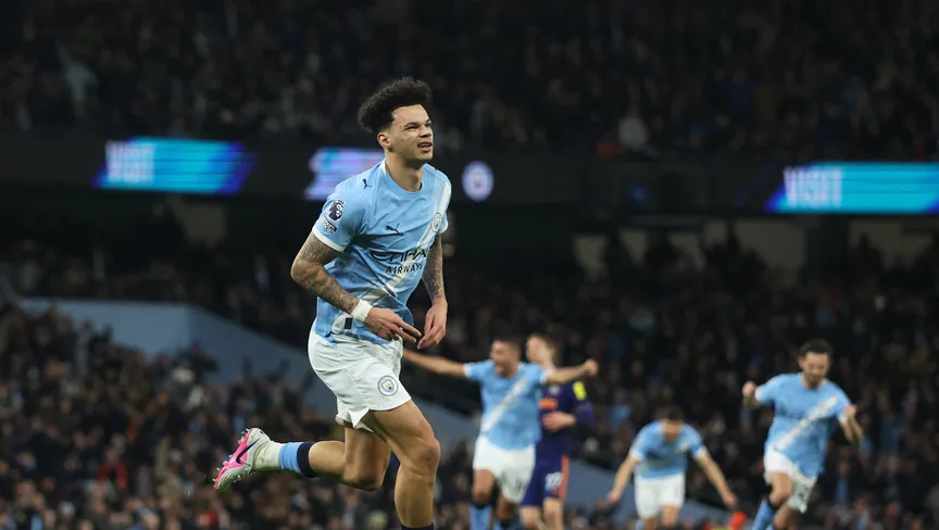 نيكو أوريلي بعد تسجيله هدفاً لمانشستر سيتي في مرمى نيوكاسل يونايتد - 21 فبراير 2026 - REUTERS