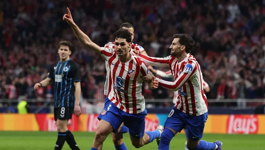 سحق أتلتيكو مدريد ضيفه كلوب بروج البلجيكي بنتيجة 4-1، في إياب الملحق، ليتأهل إلى ثمن نهائي دوري أبطال أوروبا.