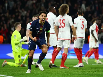 احتفال ماركينيوس بهدفه في مباراة باريس سان جيرمان وموناكو بدوري أبطال أوروبا - 25 فبراير 2026 - Reuters