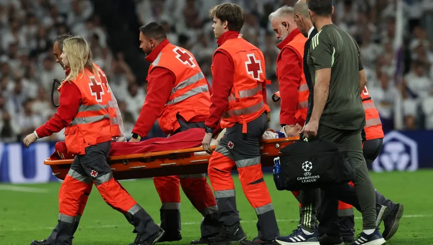 وخرج المدافع البالغ عمره 23 عاماً على محفة طبية، بعد علاجه لفترة طويلة، حيث وضع المسعفون دعامة طبية على رقبة أسينسيو.