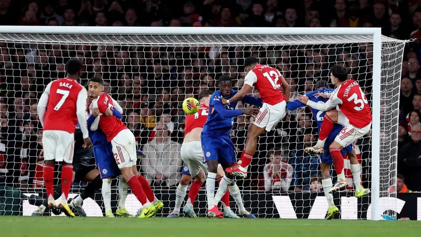 وانتصر أرسنال 2-1، وجاءت جميع الأهداف من ركلات ركنية، ليرتفع رصيد فريق المدرب ميكيل أرتيتا إلى 64 نقطة من 29 مباراة متقدماً بخمس نقاط على مانشستر سيتي الذي خاض 28 مباراة.