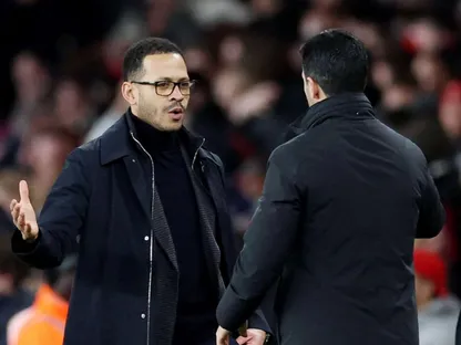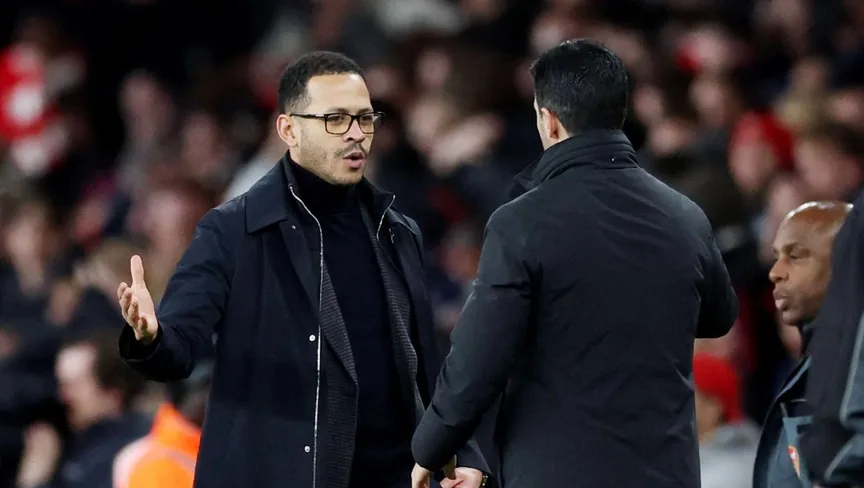 مدرب تشيلسي ليام روسينيور يصافح أرتيتا بعد الخسارة من أرسنال في الدوري الإنجليزي - 1 مارس 2026 - Reuters