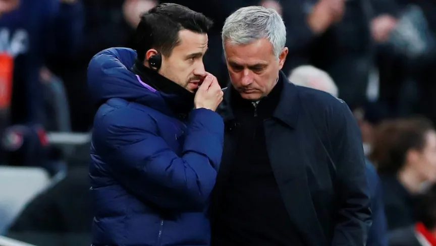 المساعد البرتغالي جواو ساكرامينتو إلى جانب جوزيه مورينيو في مباراة توتنهام وبورنموث في البريمييرليغ - 30 نوفمبر 2019 - Reuters