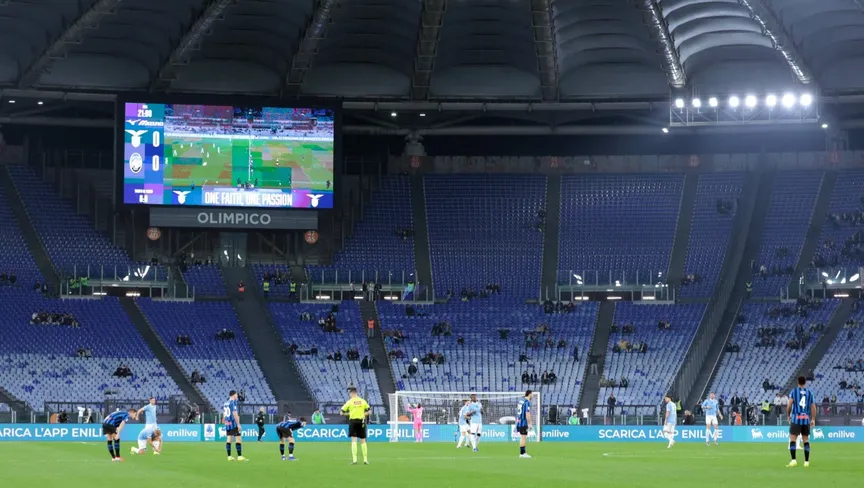 مدرجات "الملعب الأوليمبي" شبه فارغة بسبب مقاطعة جماهير لاتسيو مباراة فريقها ضد أتالانتا - REUTERS