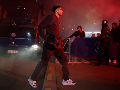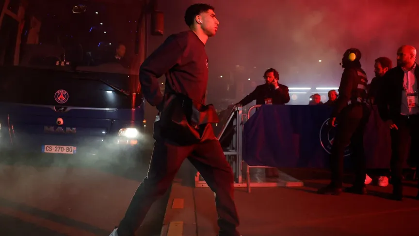أشرف حكيمي لاعب باريس سان جيرمان يصل إلى الملعب قبل مباراة تشيلسي في دوري أبطال أوروبا - 11 مارس 2026 - Action Images via Reuters