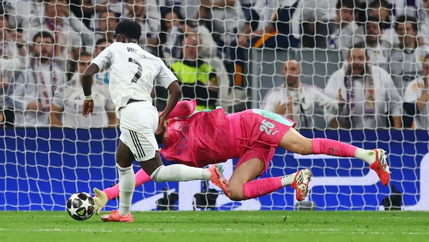 وحاول فينيسيوس مراوغة دوناروما أثناء التنفيذ، لكن حارس سيتي تصدى للكرة.