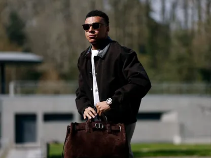 كيليان مبابي أثناء وصوله لمعسكر المنتخب الفرنسي في مركز كليرفونتان - 23 مارس 2026 - Reuters