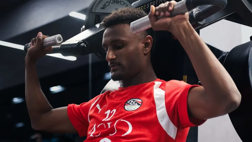 هيثم حسن لاعب منتخب مصر خلال تدريب - 23 مارس 2026 - X/@@EgyptNT