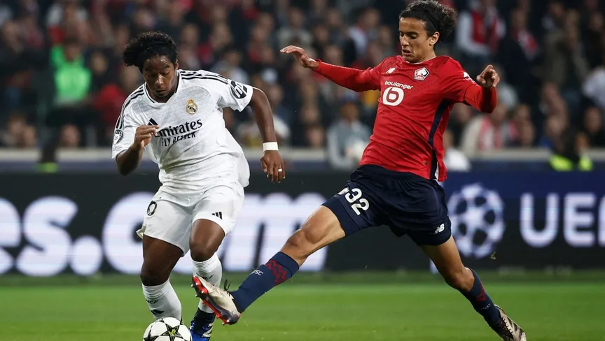 أيوب بوعدي لاعب ليل في مواجهة مع إندريك مهاجم ريال مدريد - 2 أكتوبر 2024 - Reuters
