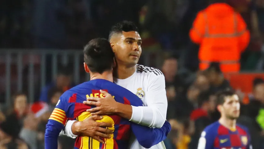 كاسيميرو وليونيل ميسي بعد مباراة بين ريال مدريد وبرشلونة - 18 ديسمبر 2019 - REUTERS