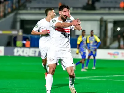 عدي الدباغ يحتفل بهدفه في مباراة الزمالك وأوتوهو بكأس الكونفدرالية الإفريقية لكرة القدم - 22 مارس 2026 - X/ZSCOfficial
