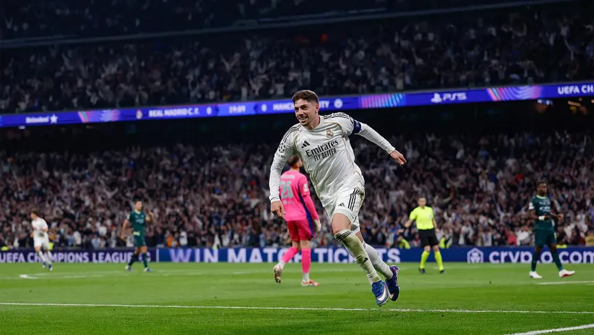 فيديريكو فالفيردي بعد تسجيله هدفاً لريال مدريد في مرمى مانشستر سيتي بدوري أبطال أوروبا - 11 مارس 2026 - realmadrid.com