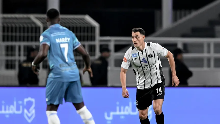 فنسنت سيرو لاعب وسط الشباب في مباراة  الأخدود بالدوري السعودي - 14 مارس 2026 - X/@AlShababSaudiFC