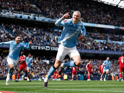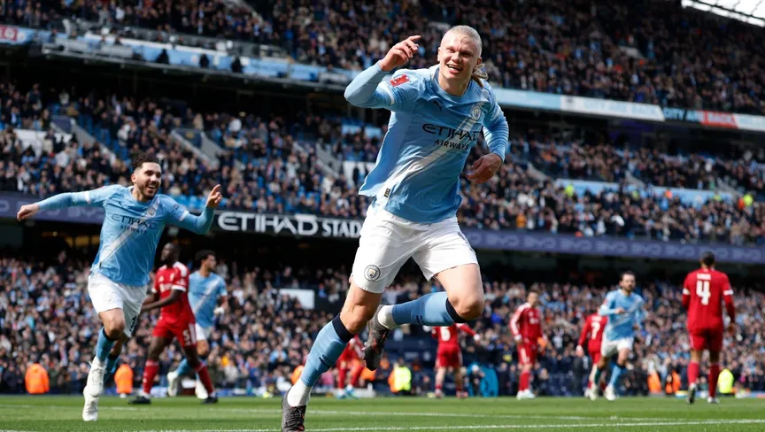 أحرز إيرلينغ هالاند هدفين ليمنح مانشستر سيتي التقدم 2-0 على ليفربول في الشوط الأول من مواجهتهما في ربع نهائي كأس الاتحاد الإنجليزي اليوم السبت.