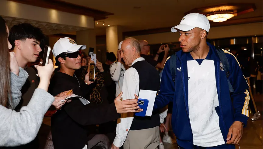 كيليان مبابي مع مشجعين لريال مدريد لدى وصول الفريق إلى مايوركا - 3 أبريل 2026 - realmadrid.com