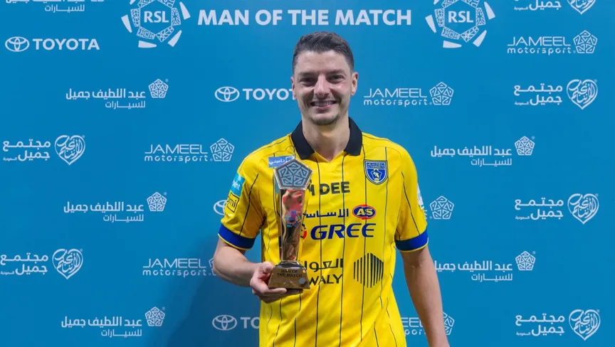 أندريه جيروتو لاعب التعاون يحمل جائزة أفضل لاعب في مباراة الهلال بالدوري السعودي - 4 أبريل 2026 - X/@AltaawounFC