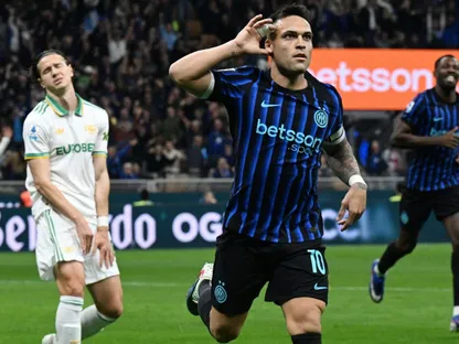 مهاجم إنتر ميلان لاوتارو مارتينيز يسجل ثنائية أمام روما في قمة الجولة 31 من الدوري الإيطالي - 5 أبريل 2026 - Reuters
