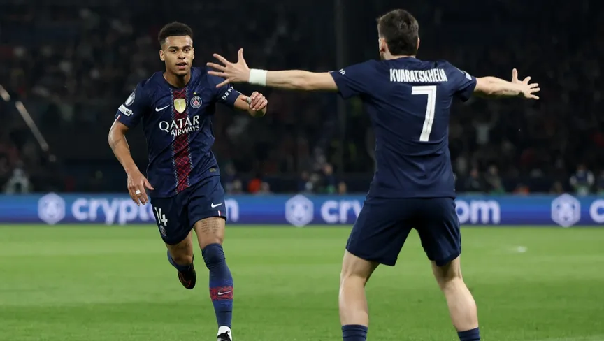 احتفال ديزيري دوي بهدفه في مباراة باريس سان جيرمان وليفربول بدوري أبطال أوروبا - 8 أبريل 2026 - Reuters
