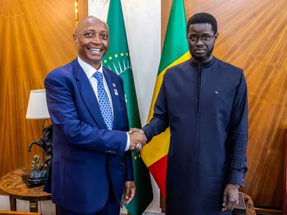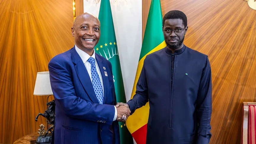 رئيس الاتحاد الإفريقي لكرة القدم باتريس موتسيبي خلال لقائه الرئيس السنغالي باسيرو ديوماي فاي في دكار - 8 أبريل 2026 - X/@CAF_Media