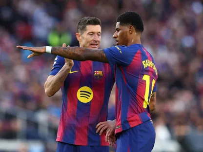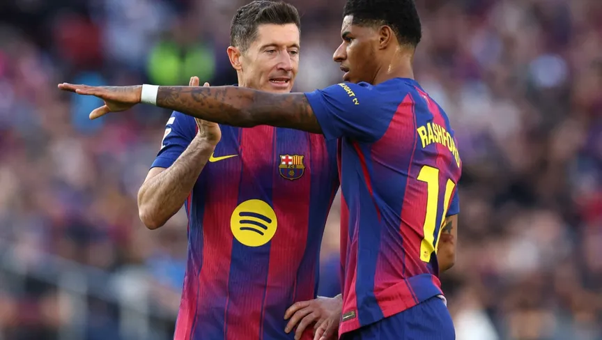كان المدرب الألماني قد أشرك ليفاندوفسكي أساسياً من أجل تثبيت قلبي دفاع أتلتيكو، وفتح المساحات أمام الجناحين راشفورد ولامين يامال، ونجح المهاجم البولندي في بعض الصراعات الهوائية، لكنه واجه صعوبات واضحة تحت الرقابة، في مباراة جرت بإيقاع مرتفع.