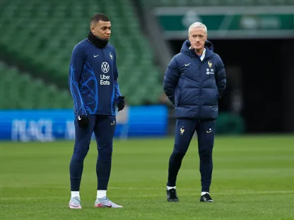مدرب فرنسا ديدييه ديشان وكيليان مبابي خلال تدريب للمنتخب - 26 مارس 2023 - Reuters