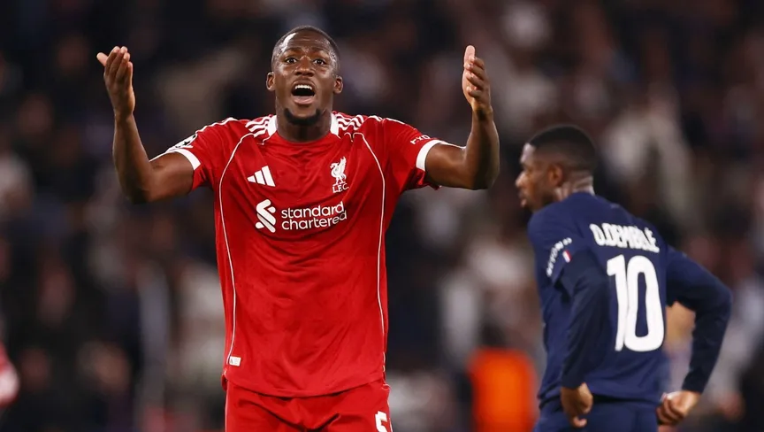 إبراهيما كوناتي مدافع ليفربول في مباراة باريس سان جيرمان بذهاب ربع نهائي دوري أبطال أوروبا - 9 أبريل 2026 - Reuters