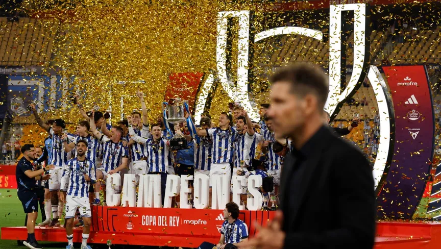 توج ريال سوسيداد بلقب كأس ملك إسبانيا بفوزه بركلات الترجيح على حساب أتلتيكو مدريد بنتيجة 4-3 بعد نهائي مثير اليوم السبت.
