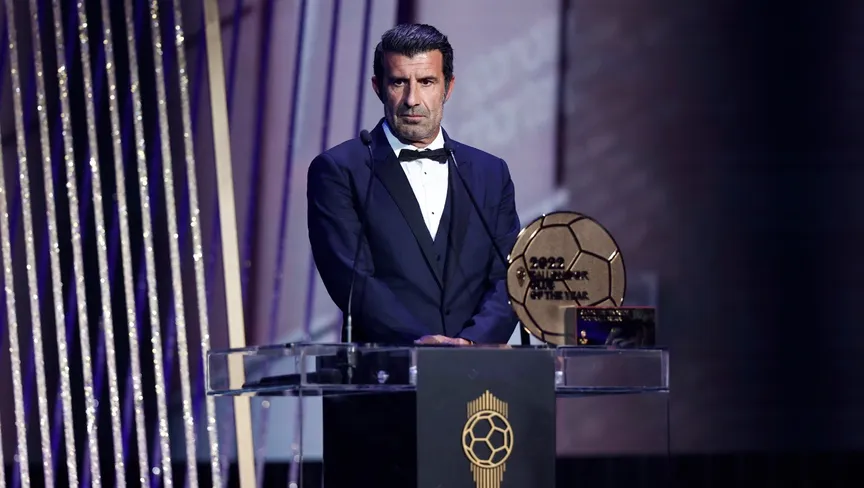 الدولي البرتغالي السابق لويس فيغو خلال حفل توزيع جائزة الكرة الذهبية - 17 أكتوبر 2022 - Reuters