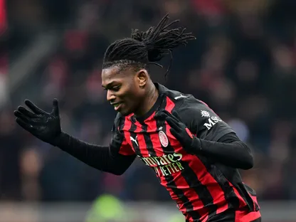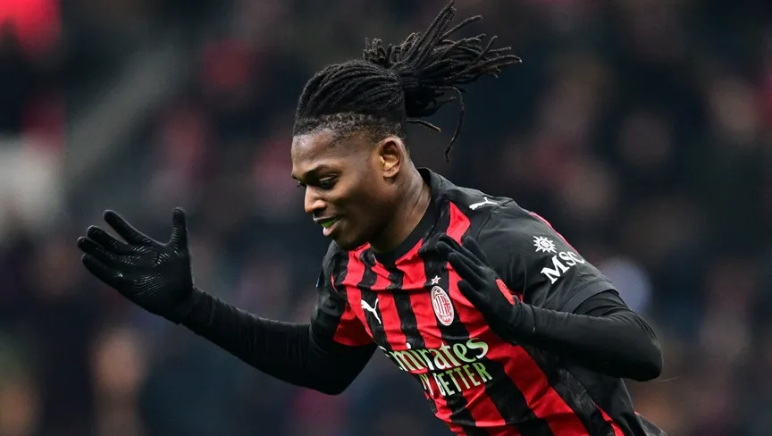 رافاييل لياو يحتفل بعد تسجيله هدف التعادل لفريقه ميلان في شباك جنوى - 8 يناير 2026 - REUTERS