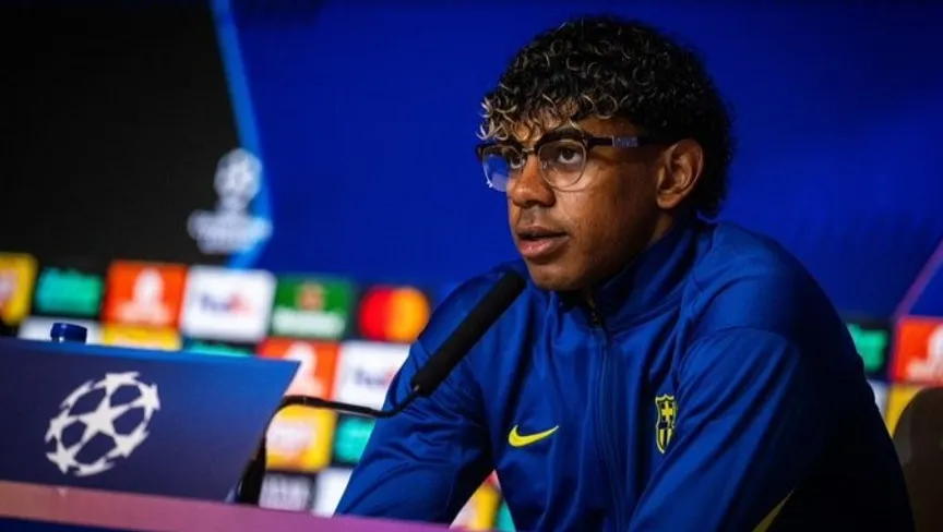 لاعب برشلونة لامين يامال خلال مؤتمر صحفي قبل مواجهة أتلتيكو مدريد في إياب ربع نهائي دوري أبطال أوروبا - 13 أبريل 2016 - X@FCBarcelona