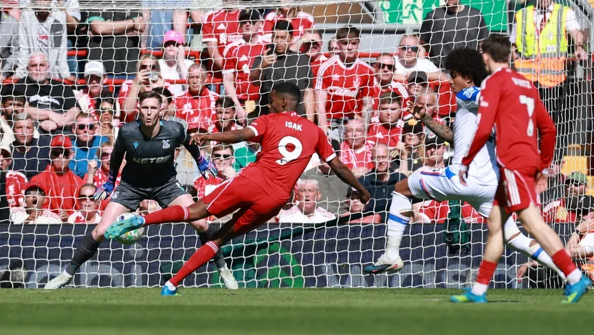 وتابع إيزاك، العائد من الإصابة، تسديدة أليكسيس ماك أليستر، وروضها لنفسه، ثم وضع الكرة بمهارة داخل الشباك بقدمه اليسرى في الدقيقة 35.