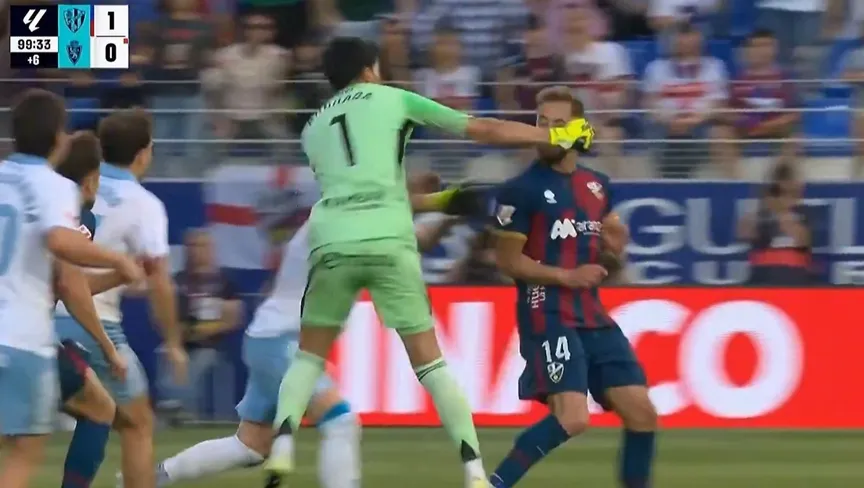 حارس سرقسطة إستيبان أندرادا يعتدي بالضرب على قائد هويسكا خورخي بوليدو في دوري الدرجة لاثانية الإسباني - 26 أبريل 2026 - screenshot