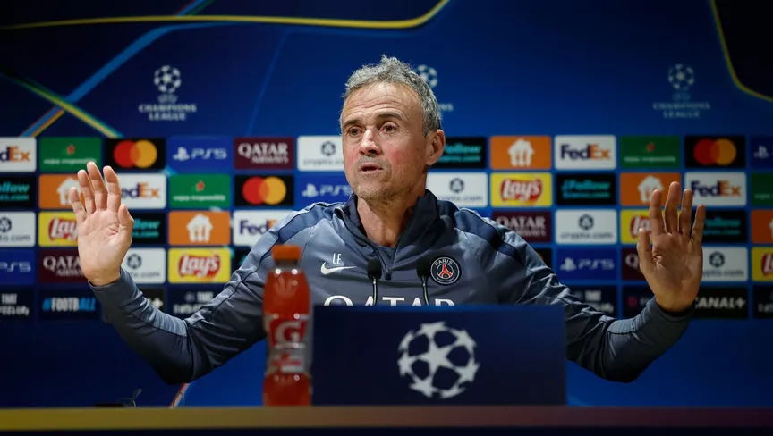 لويس إنريكي خلال المؤتمر الصحفي قبل مباراة تشيلسي وباريس سان جيرمان بدوري أبطال أوروبا - 16 مارس 2026 - Reuters