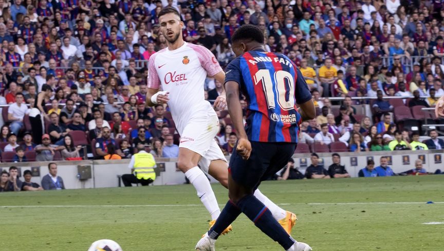 وتقدم برشلونة على ريال مايوركا بهدف مُبكر للغاية بعد 49 ثانية فقط من صافرة بداية الشوط الأول عن طريق المهاجم الإسباني الشاب أنسو فاتي بعد تلقيه تمريرة أرضية داخل المنطقة من غافي.