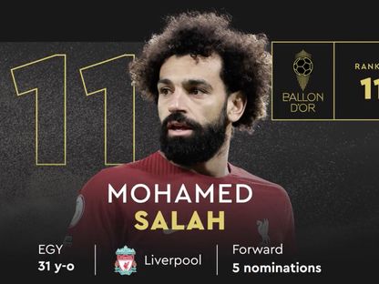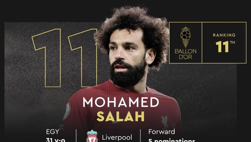 فشل النجم المصري محمد صلاح في اقتحام قائمة الـ 10 الأوائل في الترتيب النهائي لأفضل لاعبي العالم من مجلة فرانس فوتبول (الكرة الذهبية 2023)، باحتلاله للمركز الـ 11، مكتفياً بالتفوق على هداف الدوري الإسباني روبرت ليفاندوفسكي صاحب المركز الـ 12، وعلى الفائز بالثلاثية التاريخية مع مانشستر سيتي "إيلكاي غوندوغان" الذي احتل المركز الـ 14.