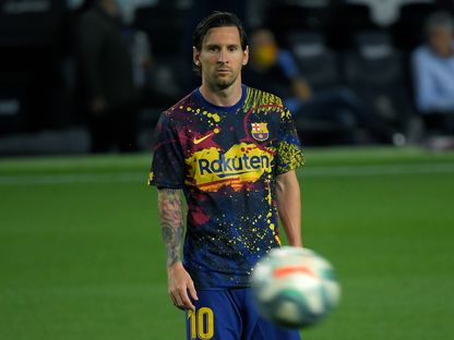 ليونيل ميسي في فترة الإحماء قبل مواجهة ليجانيس - AFP