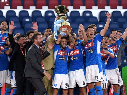 لاعبو نابولي يحتفلون بالتتويج بكأس إيطاليا - REUTERS
