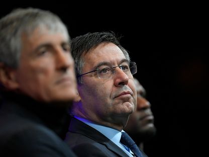 رئيس نادي برشلونة خوسيب ماريا بارتوميو (يمين) إلى جوار المدرب كيكي سيتين (يسار) - AFP