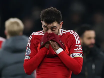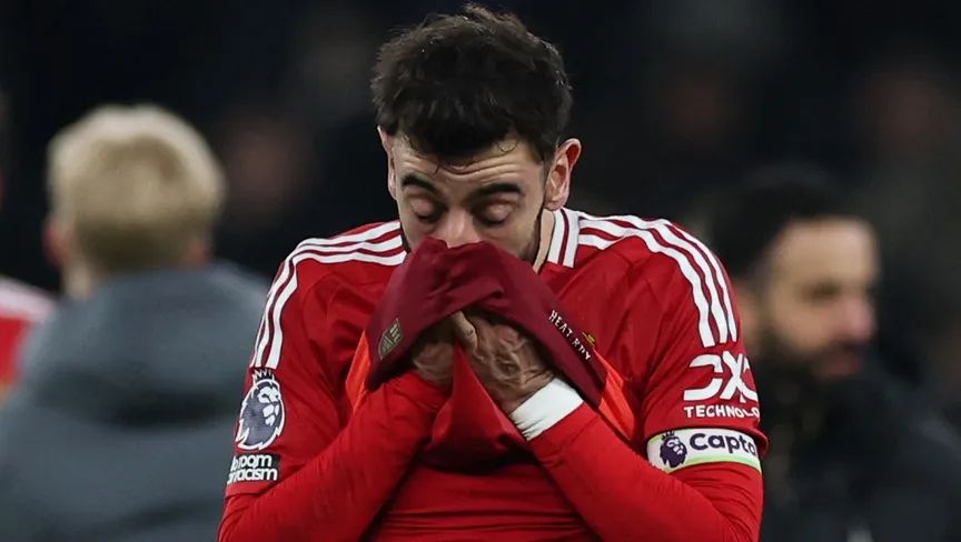 حسرة برونو فيرنانديز لاعب مانشستر يونايتد بعد الخسارة أمام توتنهام هوتسبير بالدوري الإنجليزي الممتاز - 16 فبراير 2025 - Reuters