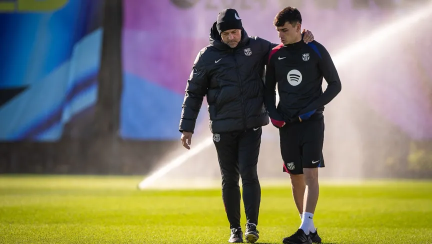 واجتمع فليك بالثنائي الأبرز في خط الوسط بيدري وفرينكي دي يونغ خلال الحصة التدريبية الصباحية ووجه لهما نصائح خاصة بالمباراة.
