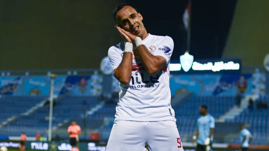 ناصر منسي مهاجم الزمالك يحتفل بهدفه في غزل المحلة بالدوري المصري - 2 ديسمبر - X@ZSCOfficial