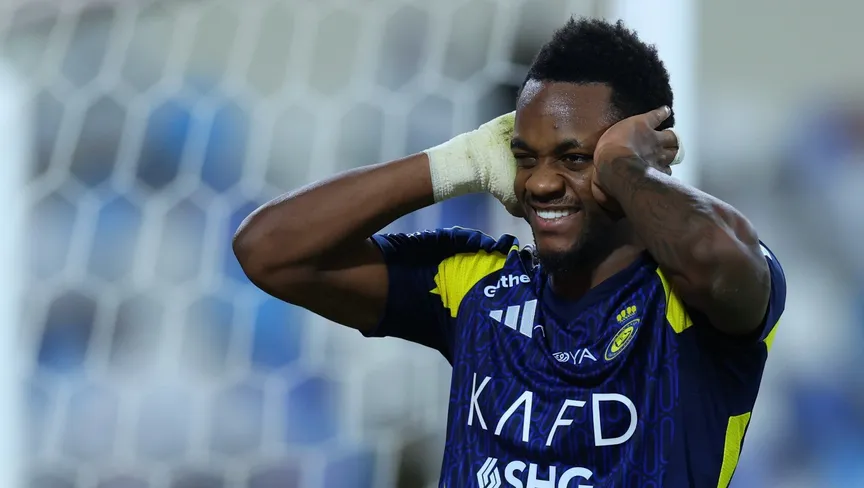 جون دوران مهاجم النصر يحتفل بتسجيل هدف في مرمى الأخدود بدوري روشن السعودي - 12 مايو 2025 - X/@AlNassrFC