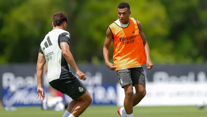 كيليان مبابي وراؤول أسينسيو خلال تدريب لريال مدريد - 7 يوليو 2025 - realmadrid.com