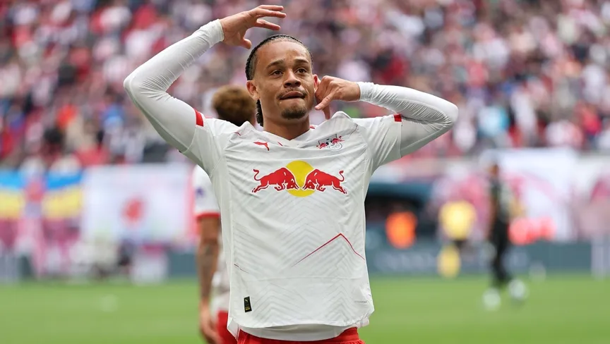 تشافي سيمونز لاعب لايبزيغ يحتفل بهدفه في مرمى شتوتغارت في الدوري الألماني - 17 مايو 2025 - X/@RBLeipzig